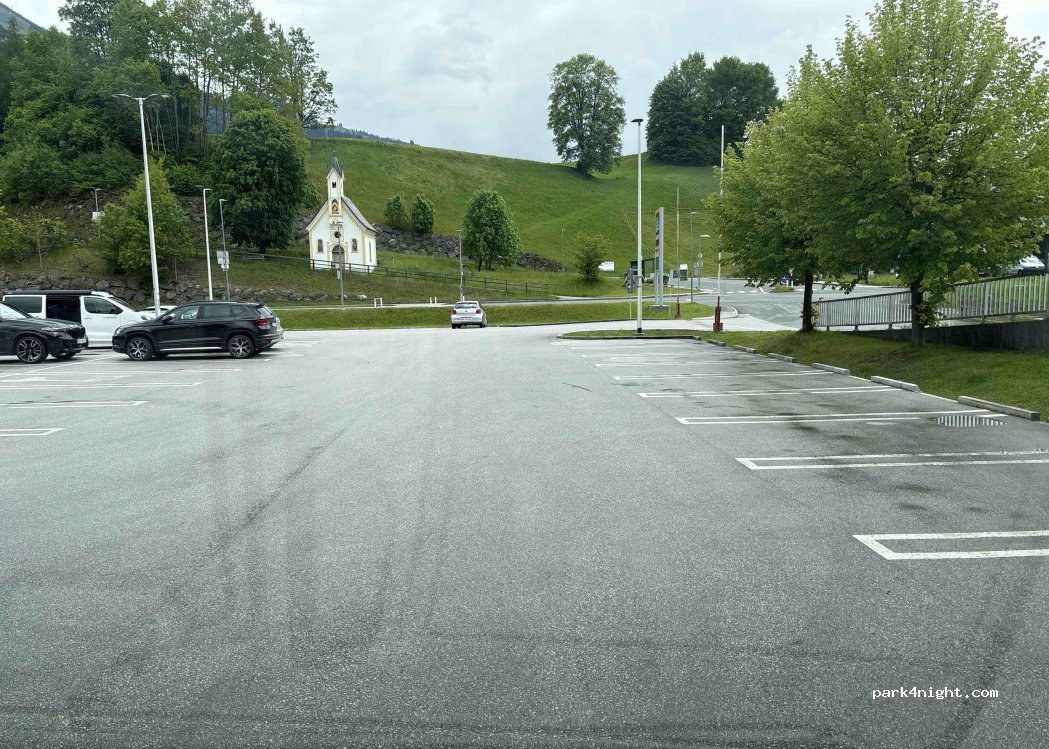 Parking du supermarché Hofer pour une pause, du shopping ou un déjeuner. C'est pavé et plat.
