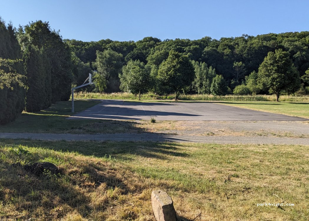 Basketballkorb auf dem geteerten Bereich. es wäre sicher besser, außerhalb zu parken, z.B. am Rand der Schotterstraße auf der Rückseite im Norden.