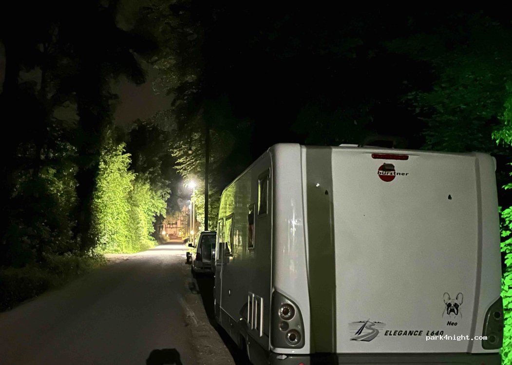 Super endroit! Cul de sac avec un hotel au fond legerement bruyant. En allant dans la foret sur la gauche il y a des tables et des barbecues avec du bois a disposition. Super nuit.