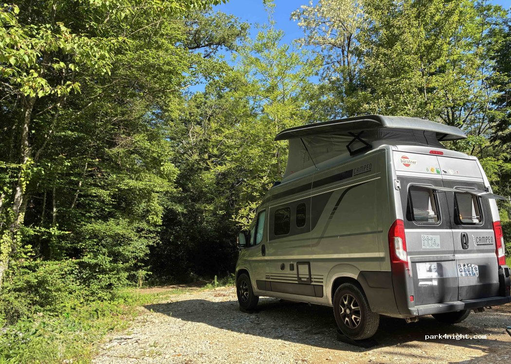 Très passant le matin avec beaucoup de promeneurs et joggeurs. Pas un lieu pour dormir alors qu il y a déjà beaucoup d’autres parkings à côté.