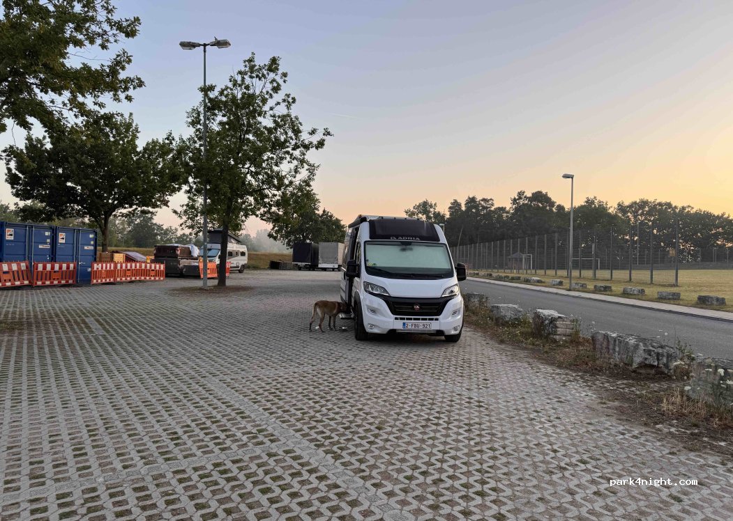 A very good and quiet place to stay overnight. There are two entrances: one with a height restriction, and 150 meters further (before the underpass) with no height restriction.