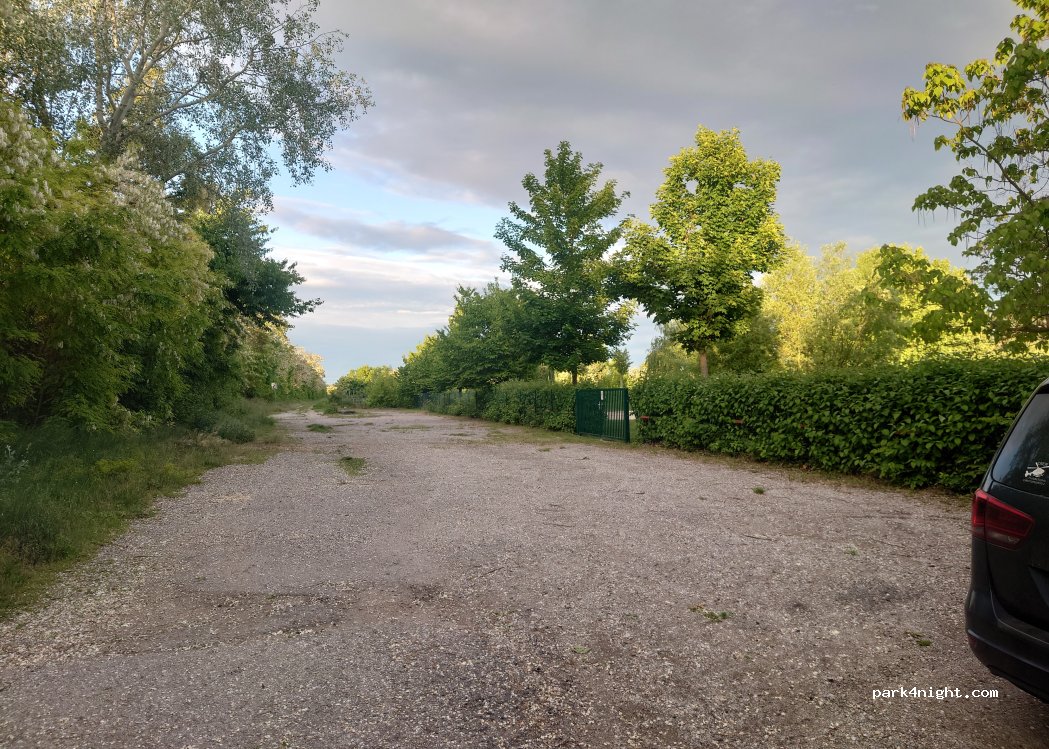 Gravel parking lot between the railway line and the recreational area. Public restrooms are available in summer. Access is not via "Seepark Thürnthal" (people there are strange...), but via the village of Thürnthal!