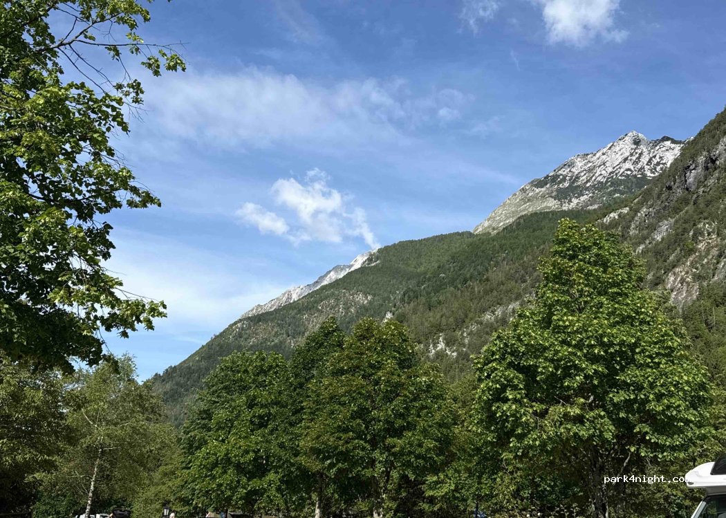 Man ist umgeben von Bergen, super schön. Es kann schon voll und somit etwas eng werden aber alles noch ok. Duschen und WC ist sauber und neu. Man ist zwar sehr nahe an der Straße, stört aber weniger da gegen Abend nicht mehr so stark befahren.