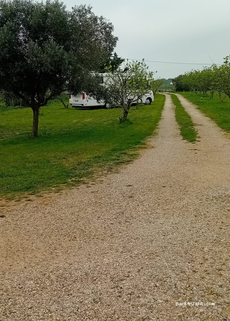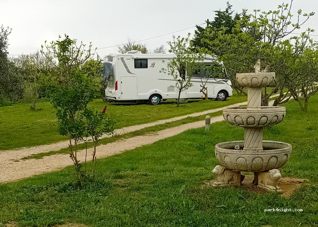Six pitches available for campervans at €10.00 per night on a grassy area among fig trees.