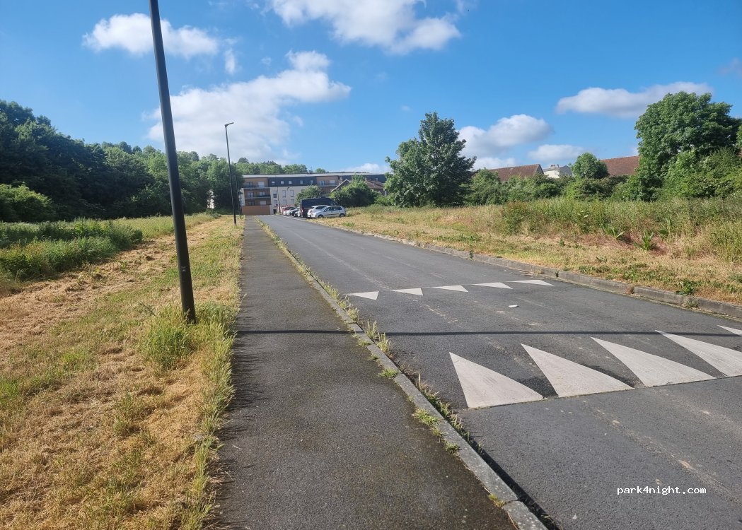 Idéal pour les camping-cars de 5,5 m. Les camping-cars de 6 m peuvent empiéter légèrement sur la large route, même avec les roues sur le trottoir en pierre, pour compenser le léger dévers.