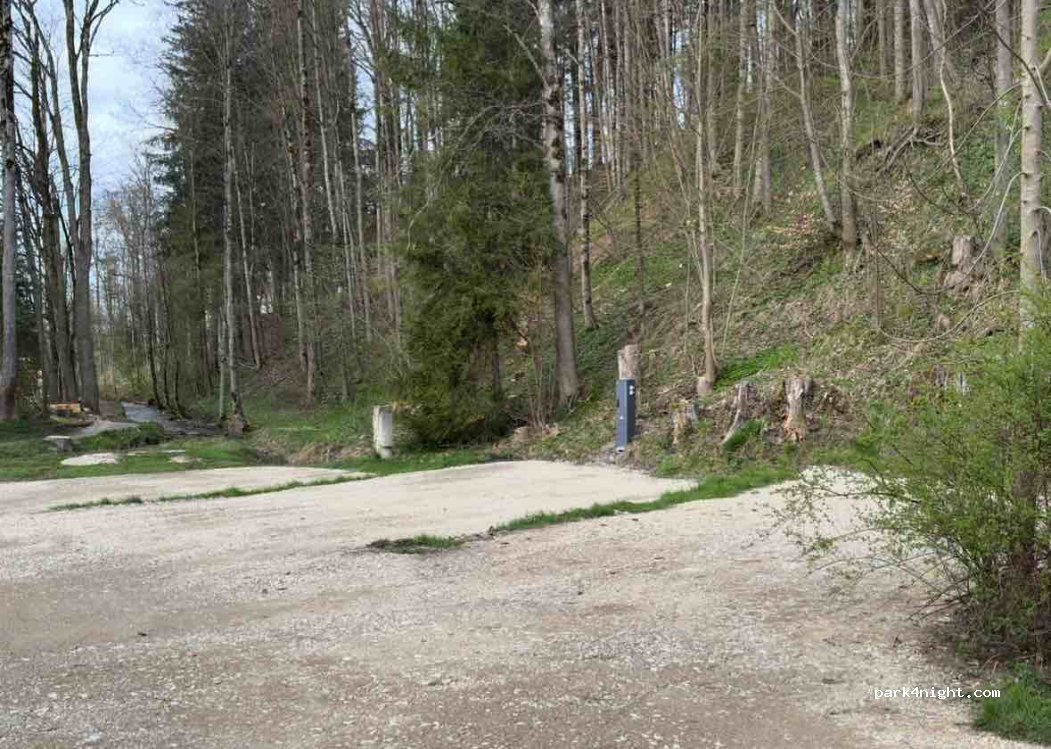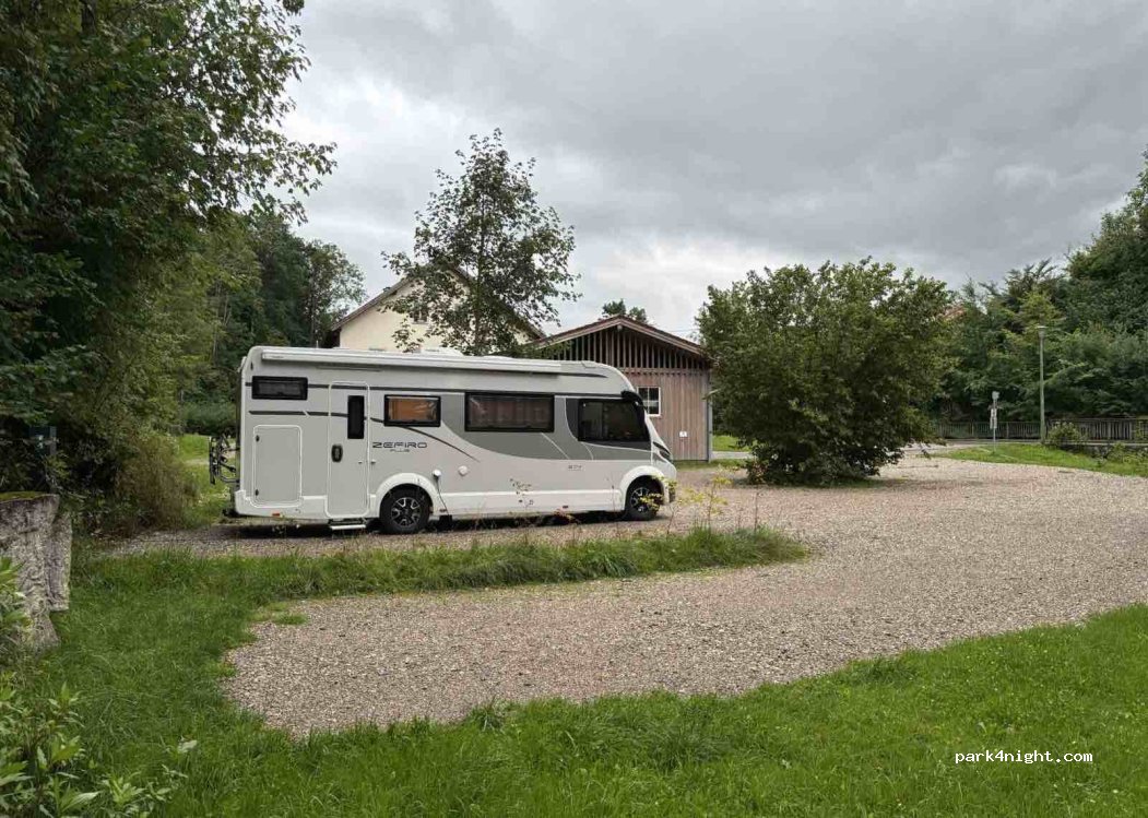 Tres amplias parcelas para autocaravanas o autobuses con suelo de grava, ubicadas directamente en la B17. 20 € por vehículo y noche, incluye electricidad y agua. No se admiten reservas.