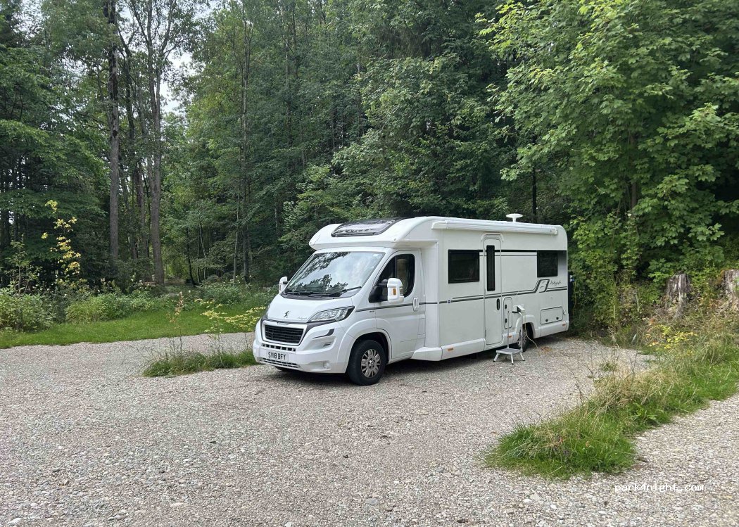 Lovely little stopover with 3 places with electric for €20. Very peaceful night. Walked into the village along a small stream and through a sawmill. 2 or 3 places to eat (Pizza restaurant was really good, served us at 9.40 when closing at 10). Had a few shops and a bakery as well as a wee hut with local produce in vending machines.