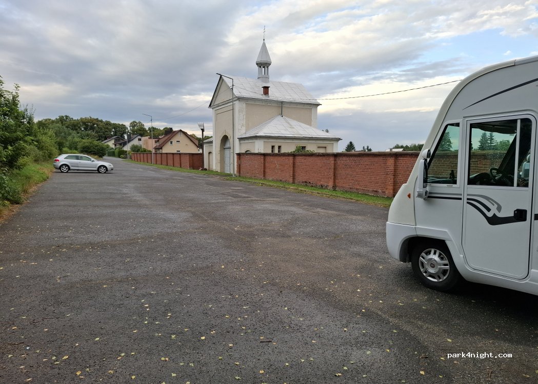 Just regular parking spot next to cemetery. It's quiet & safe, a lot of spots to stay, good place to emergency stop, when you don't have time to look for something better.