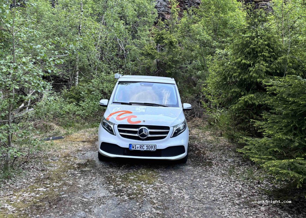 Pequeña plaza de aparcamiento en una calle (poco transitada). Los árboles brindan privacidad. Sólo apto para campistas pequeños. Está bien para una noche, lo usamos como alternativa ya que todos los demás sitios estaban ocupados.