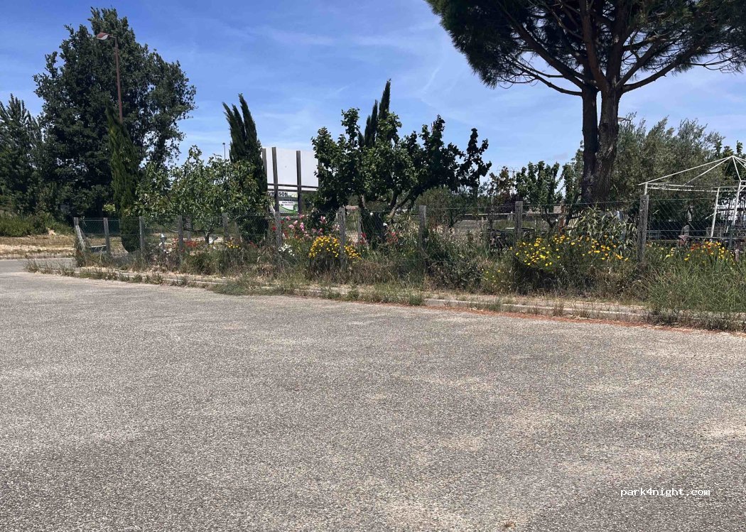 Aparcamiento en polígono industrial, una chocolatería justo al lado para comer helado, un molino de aceite y un comerciante de segunda mano y una trufería justo al lado