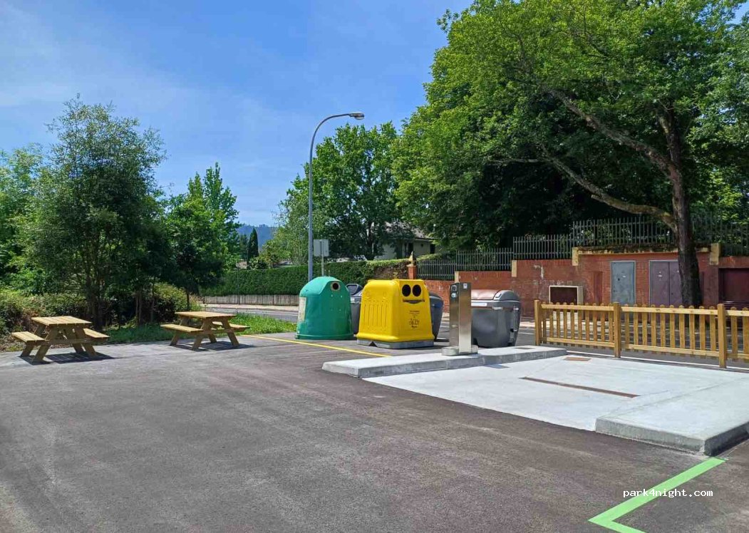 Maravillosa area nueva e ideal para carga y descarga incluso enchufarse con un alargador. Plazas niveladas . Gracias Amorebieta, hemos consumido en el pueblo!