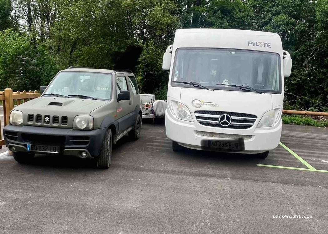 Merci à la ville pour cette aire. Je confirme que le grand camping car est toujours installé sur deux et hier soir il y avait aussi un autre camping car avec une remorque voiture qui lui occupait trois places plus sa voiture garée sur le parking camping car. Honte à eux pour leur égoïsme et j’espère qu’ils reconnaîtront. D’autres camping car sont venus hier soir mais sont repartis faute de place