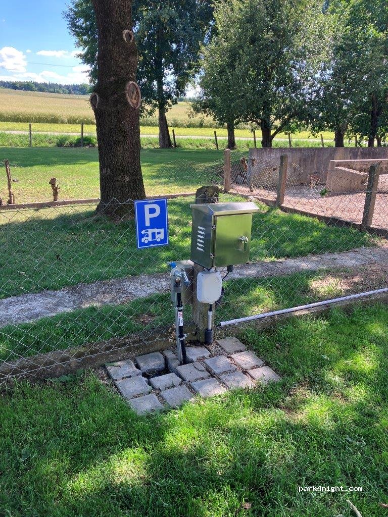 Highly recommend a stop here. The lady who met us gave us a lovely warm welcome, and although there was no drinking water at the tap, offered to fill our container instead. Her warm hospitality made this a memorable stop for us. We had more pleasure staying here and walking around the quiet village than walking around Augsburg that is about a 30 minute drive away. Diolch yn fawr/Danke/thanks.