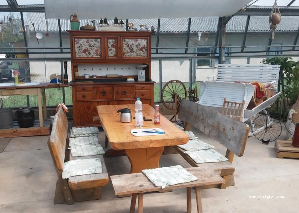 En las afueras de un pequeño pueblo cerca de Zwickau, rodeado de vegetación, tenemos un lugar acogedor para conductores cansados, con espacio para todo tipo de vehículos, desde motos y autocaravanas hasta camiones. También hay una pequeña tienda de productos agrícolas con delicias húngaras y muchos productos caseros.