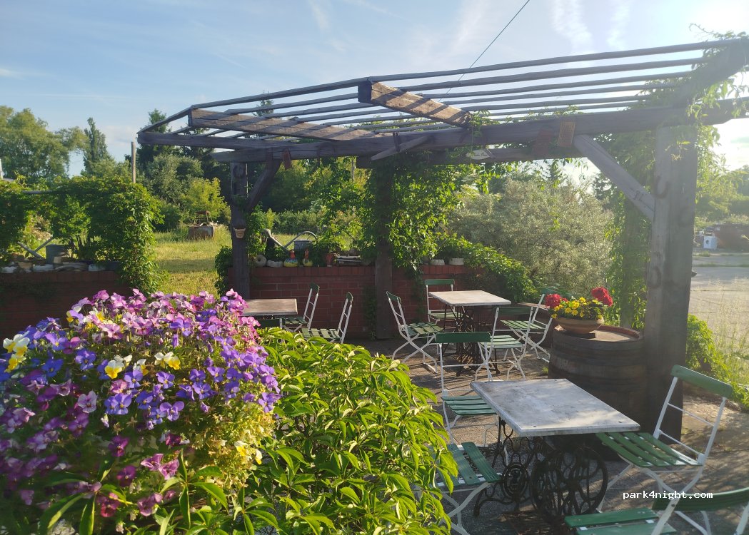On the outskirts of a small town near Zwickau, surrounded by greenery, we have a cozy spot for tired drivers, with space for everything from motorcycles and campers to trucks. There's also a small farm shop with Hungarian delicacies and many homemade items.