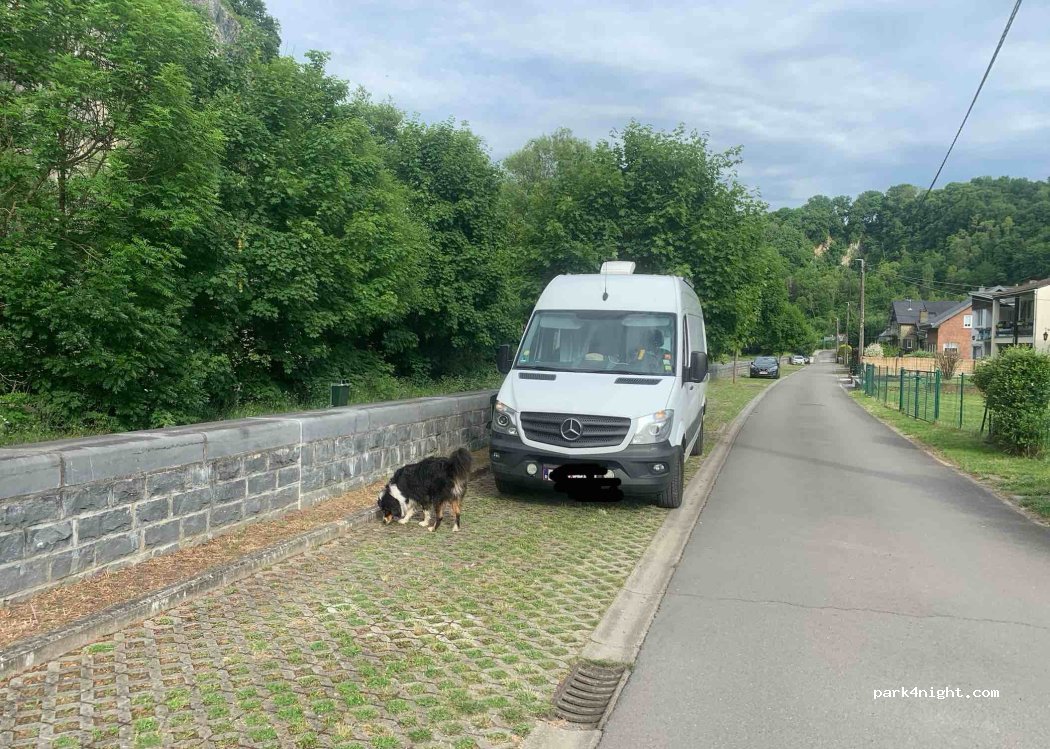 Endroit calme dans une rue à sens unique au bord de l'eau. Aucun panneau d'interdiction. Être autosuffisant. Poubelle disponible. Promenade le long de l'Ourthe.