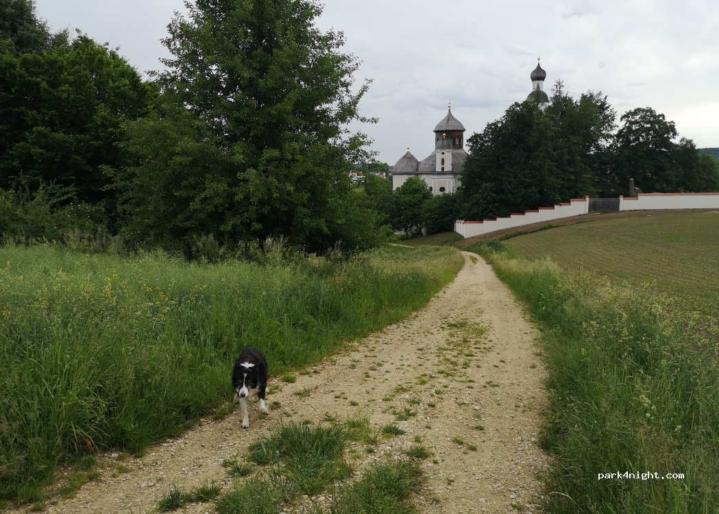 Ein kurzer Spaziergang mit den Hunden ist auf einem Feldweg möglich, der kurz vor der Kirche bergauf führt. Bitte Rücksicht auf die Wildtiere nehmen.