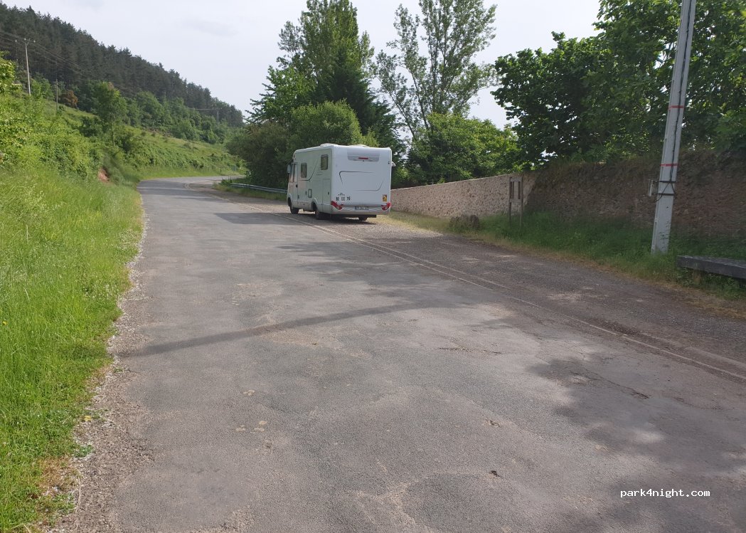 Le camping et le stationnement (nocturne?) des campings-cars sont interdits sur le grand parking des Monastères de Yuso et Suso à San Millán de la Cogolla classés au patrimoine mondial de l'Unesco. Arrivés la veille après la fermeture, ces parkings légèrement en pente au bord d'une petite route sans issue nous ont permis de passer une nuit au calme.