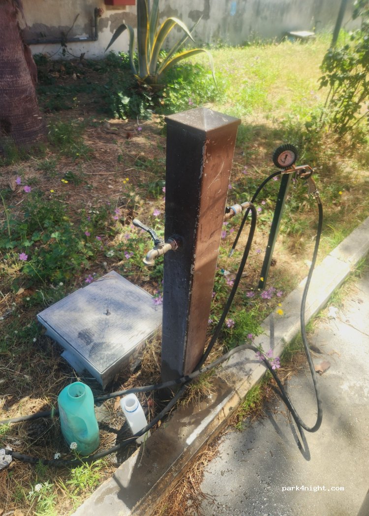 In una stazione di servizio. Acqua potabile. Rubinetto accessibile.