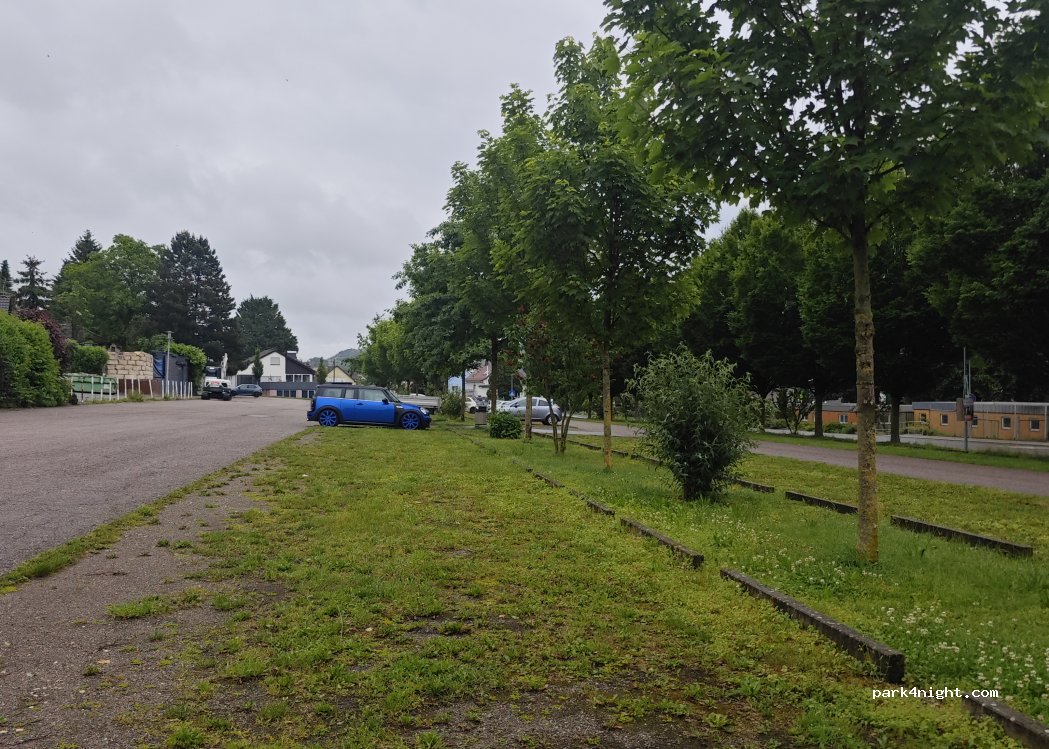 Super Platz zum Übernachten. Keine Verbotsschilder. Tolles Freibad mit Duschen und WC gleich nebenan. Nachts sehr ruhig.
