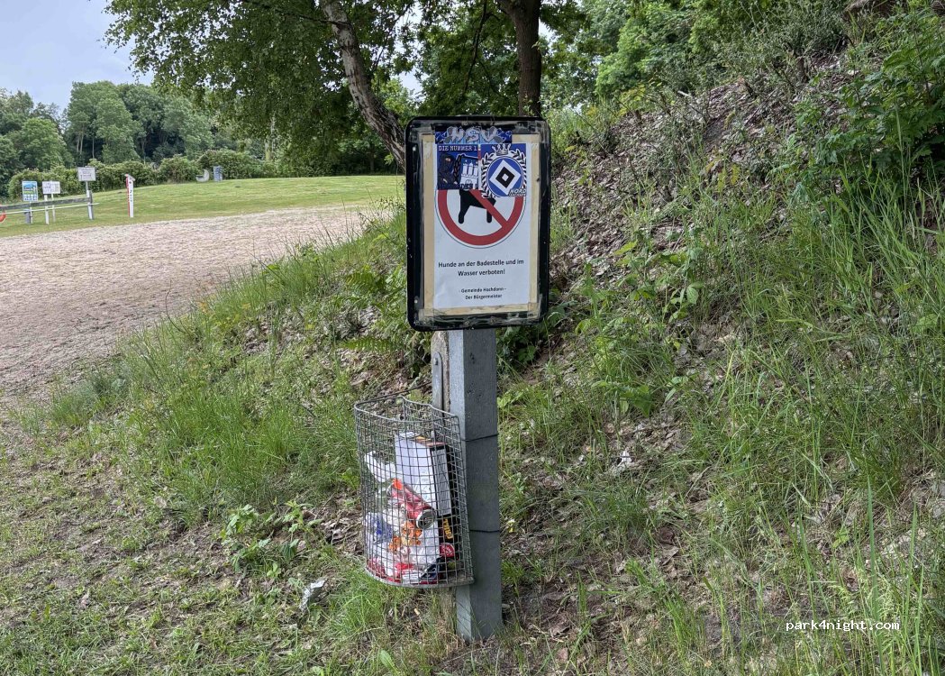 Kleiner Parkplatz direkt neben einem Campingplatz. Zu Fuß durch die Poller und rechts halten ca. 150m um zu einer kleinen Badebucht (klein Westerland) im Nord-Ostsee-Kanal zu gelangen. Nicht für Übernachtungen geeignet.