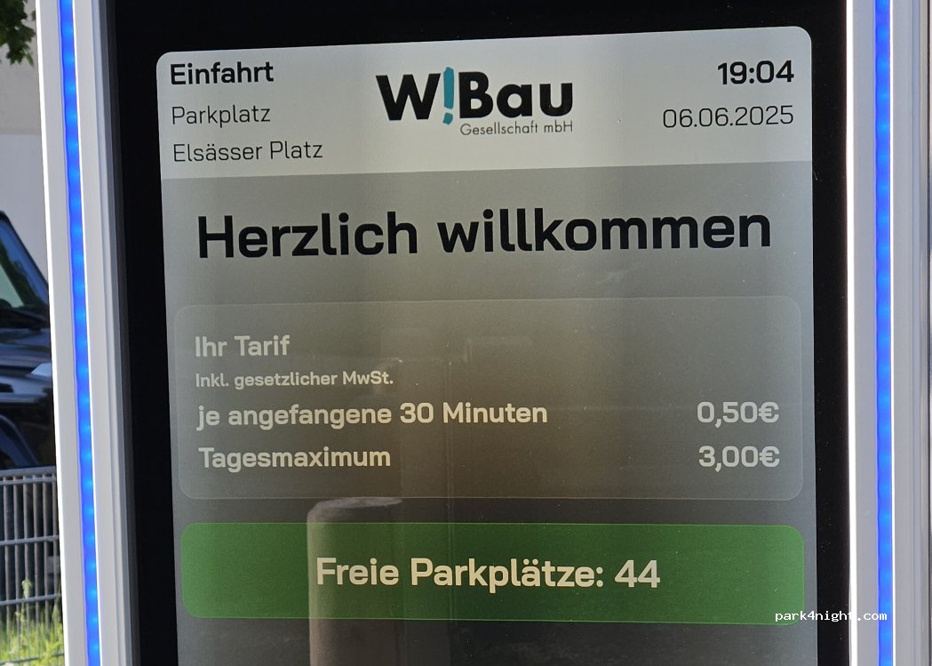 Parking payant. Aucune restriction de hauteur. Des places relativement plates et ombragées sont également disponibles. Le niveau sonore est parfaitement acceptable la nuit, car des places sont disponibles à environ 20-30 m de la rue.