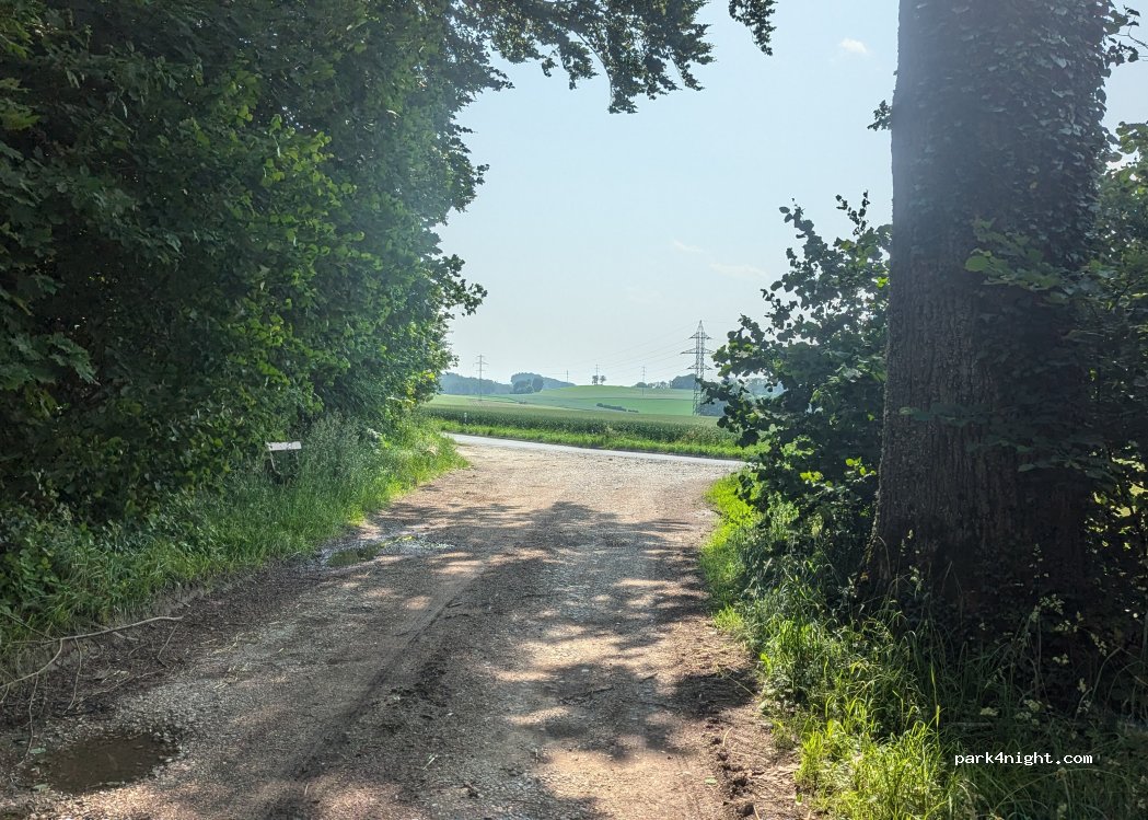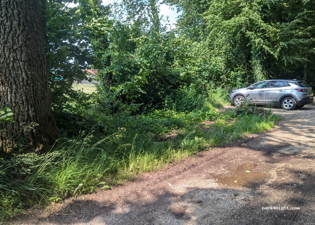 Ein kleiner Parkplatz am Waldrand mit Wanderwegen und Mountainbike-Strecken. Leicht zugänglich und ohne Höhenbeschränkung. Ideal für ein oder zwei Nächte.