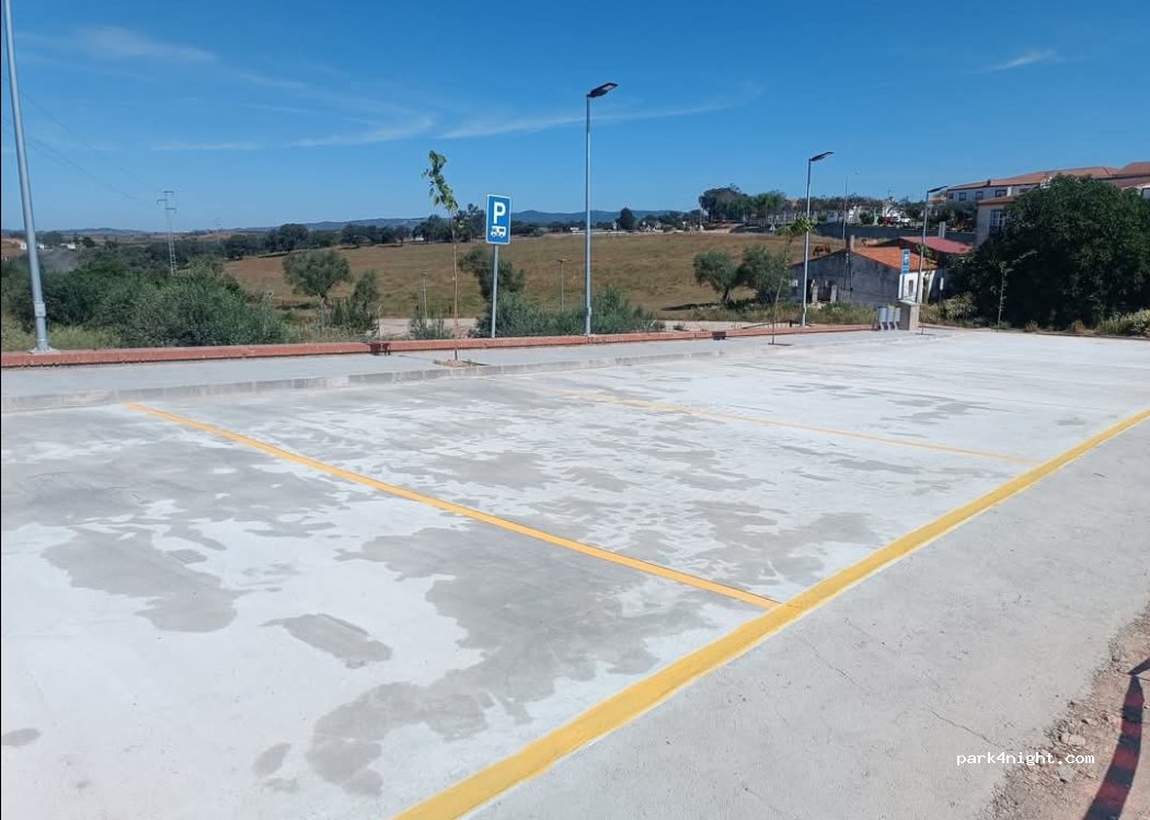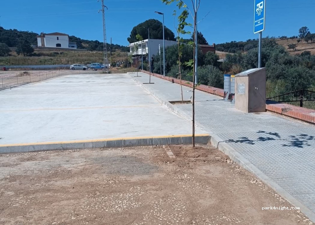 área nueva ,con desagüe y agua pero totalmente desnivelada y al lado de la carretera ,no tiene sentido que hagan unos aparcamientos para dormir en una rampa