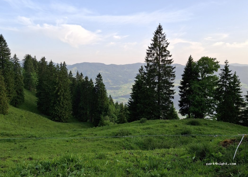 Endroit très sympathique. De la place pour 4/5 voitures. Paysage dans la montagne face aux arbres. Calme et paisible pour dormir (attention nous avons juste eu une voiture qui nous a klaxonné tout du long de son trajet avant de repartir)