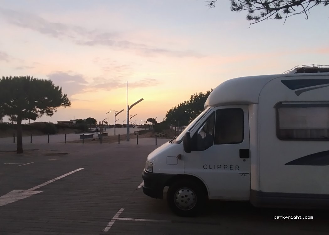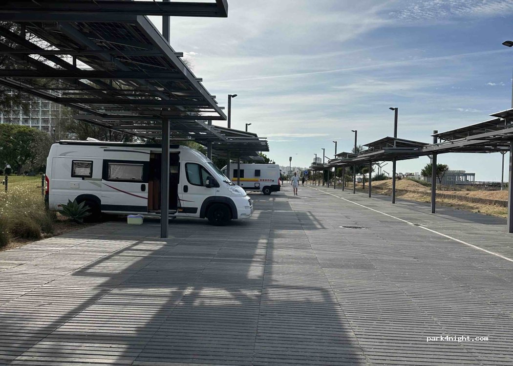 Buen lugar para estacionar tanto para acceder a la playa como a La Marina de VikaMoura o pasear por Quarteira. Finalmente estacione en un parking a pocos metros hacia Quarteira por causa de la altura de los paneles. Tranquilo, seguro y aparentemente sin problema por las fechas.