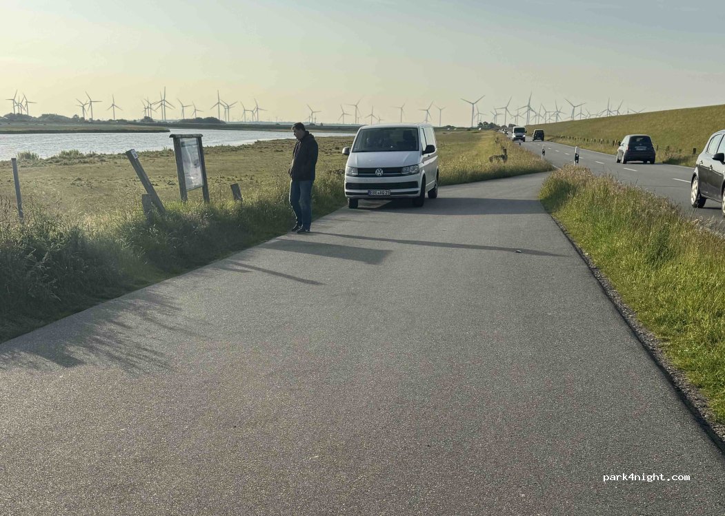 Liegt am Damm neben der Landstraße. Es gibt keine Toiletten oder Serviceeinrichtungen, und der vorbeifahrende Verkehr kann manchmal laut sein. Uns hat es jedoch nicht gestört. Ein malerischer Ort. Aber Vorsicht, der Platz ist nicht zu breit. Eher für Autos geeignet.