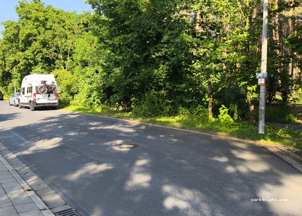 Parkplätze entlang der Straße zwischen Wohngebiet und Wald. Kein Service. Ideal um den Spielplatz im Wald zu besuchen oder zum Wandern und Fahrradfahren.