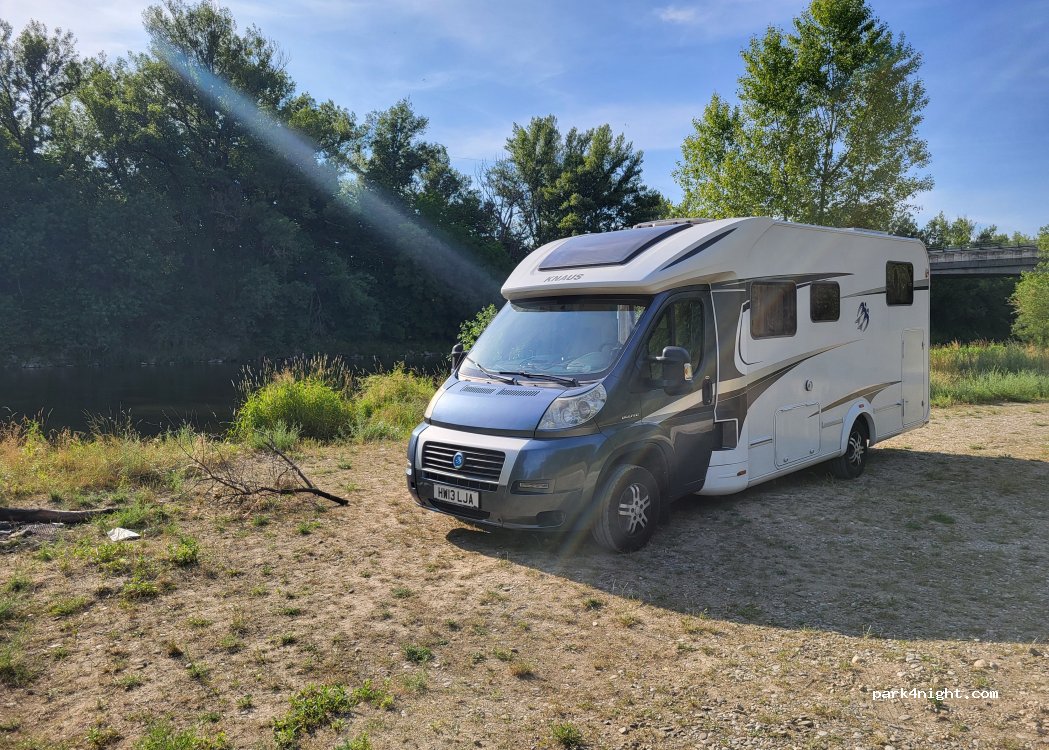 Ein sehr schöner Platz direkt am Fluss, an dem man parken kann, viel Platz hat und kostenlos im Fluss schwimmen kann.