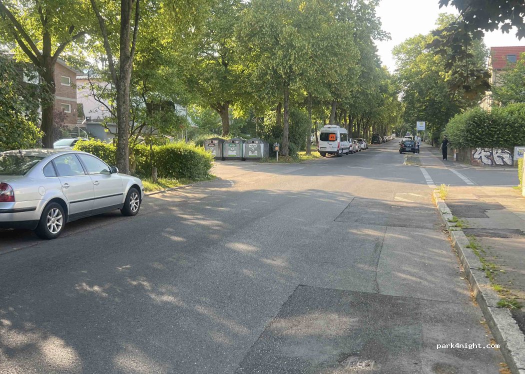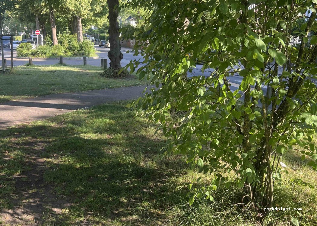 Es ist eine schöne Allee, wenn auch eine Zubringerstraße doch relativ ruhig – normaler Verkehr halt. Direkt am Rand des Anwohner Parkbereiches und strategisch nicht schlechter als der öffentliche Campingplatz! Mittig in der Allee steht man unter schönen Laubbäumen an einem grasbewachsenen Mittelstreifen. Zur Wiederherstellung der Fahrtüchtigkeit für eine Nacht sehr zu empfehlen.