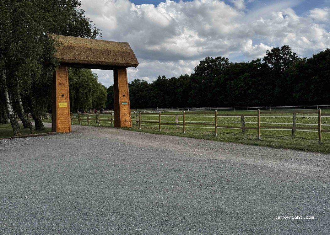 Magnifique parking privé devant le centre équestre « Lütt Piergorn », avec vue sur les pâturages et un magnifique portail. Aucun service, mais vous pouvez utiliser les toilettes du manège intérieur. En semaine, le parking est moins fréquenté en journée et parfaitement calme la nuit. Le week-end, il peut être bondé en raison des clients du centre équestre, généralement des parents qui emmènent leurs enfants en cours d'équitation. Les propriétaires, très sympathiques, facturent un parking de 10 € par nuit, déductible lors de la réservation d'un cours d'équitation. Le paiement peut être effectué par PayPal ou en espèces.