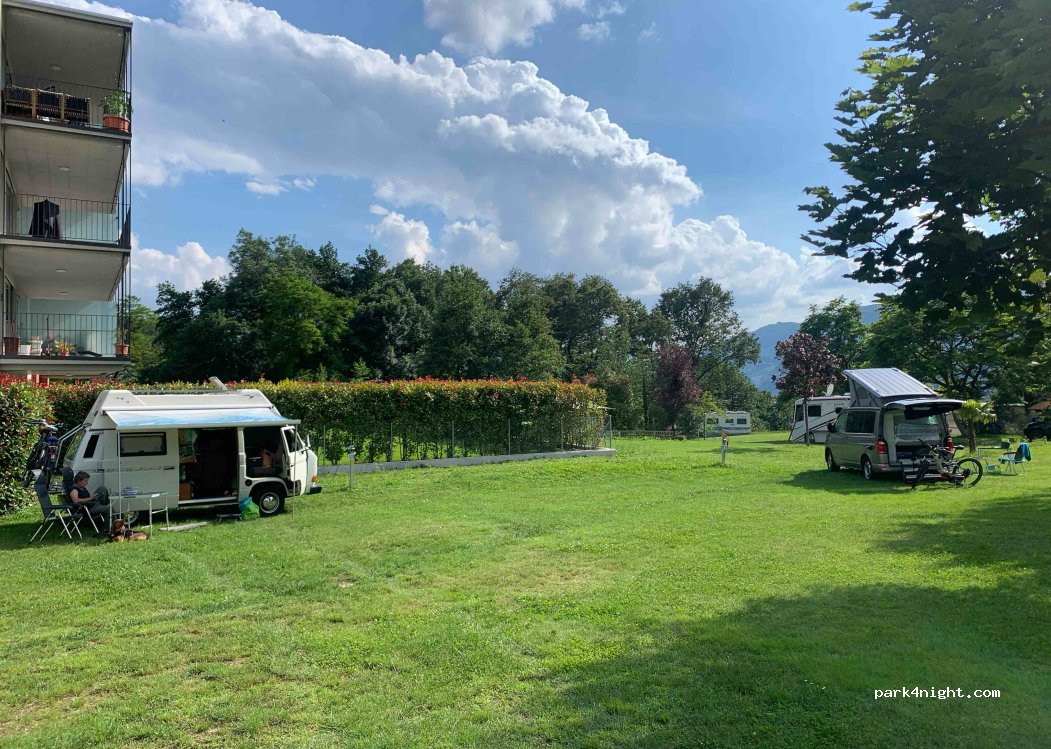 Camping très calme tout proche de Lugano. Possibilité de faire le plein d'eau, mais pas de vidange. Accueil très sympathique et si vous arrivez tard, pas de souci on vous donne le code par téléphone. On s'installe on l'on veut jusqu'au lendemain. Prix très raisonnable pour le Tessin
