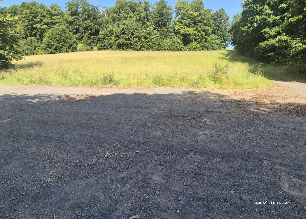 Grosse ,,durchgangsstrasse", sodass auf beiden Seiten womos/vans stehen können. Kein auto, kein Wanderer gesehen (Samstag vormittag). Platz für ca 10 vans