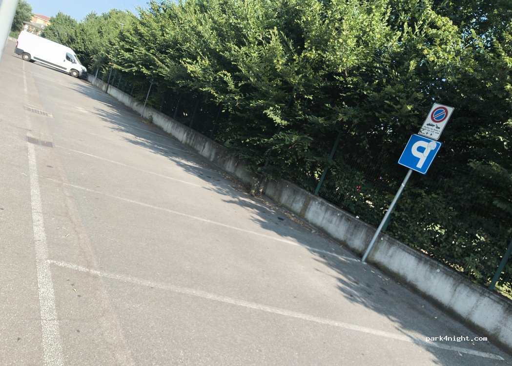 Parkplatz an einem großen, eingezäunten Park mit Spielplatz, Fitnessraum und Tischtennisplatte. Wasserhahn und Wasser waren heute defekt. Viel Gras für ein Picknick oder Fußball. Nur ein Hinweis: Während des Marktes ist das Stehen hier nicht gestattet.