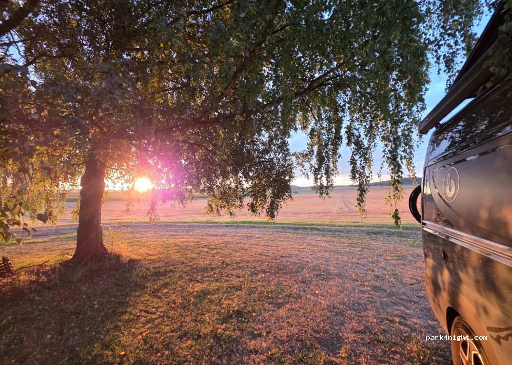 Privater Stellplatz auf einem Bauernhof in der Nähe vom Campingplatz Neuenhainer See, wo man schwimmen kann.