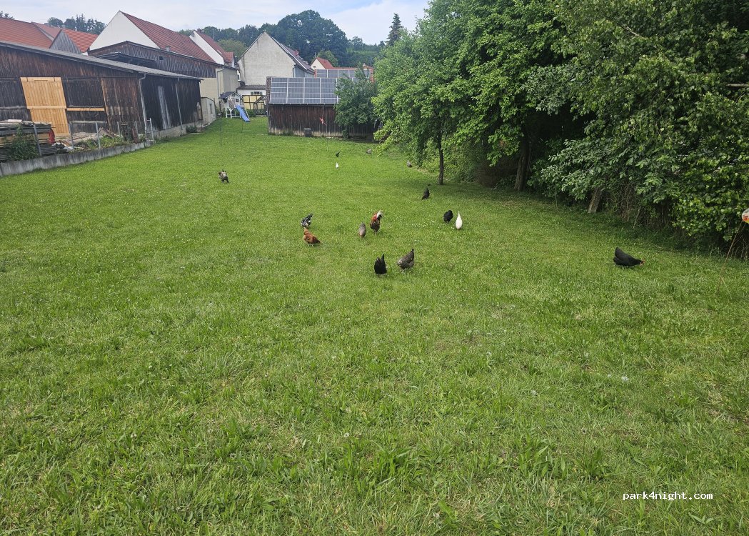 – Die Wiese ist nur bei trockenem Wetter befahrbar. Alternativ oben im Hof. (Nicht ganz so schön wie unten auf der Wiese. )
