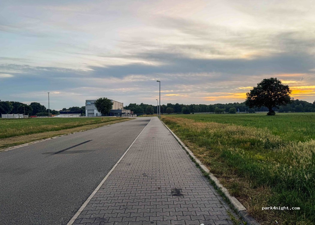Marked lay-by in a new industrial area, about 200 metres from the motorway simple but convenient. You’ll hear traffic from the motorway. Located in a new industrial area on a dead-end road to a concrete plant – barely any traffic at night.