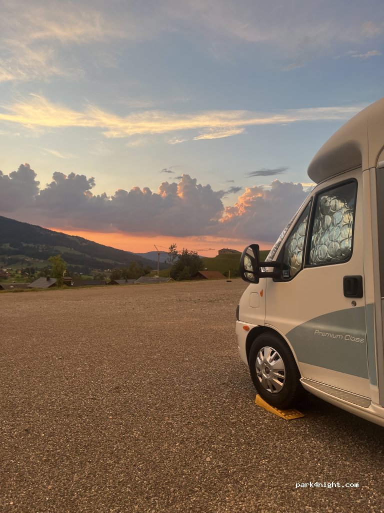 Grand parking qui peut contenir de très nombreux véhicules. un peu en hauteur ce qui permet d'avoir une vue sympa. Eau et Wc mais pas de douche. 15€ la nuit a régler au moniteur de parapente qui passe le soír. attention toutefois même si vous restez au moins trois nuits vous n'avez pas le droit à la carte d'hôtes du Bregenswald c'est dommage !