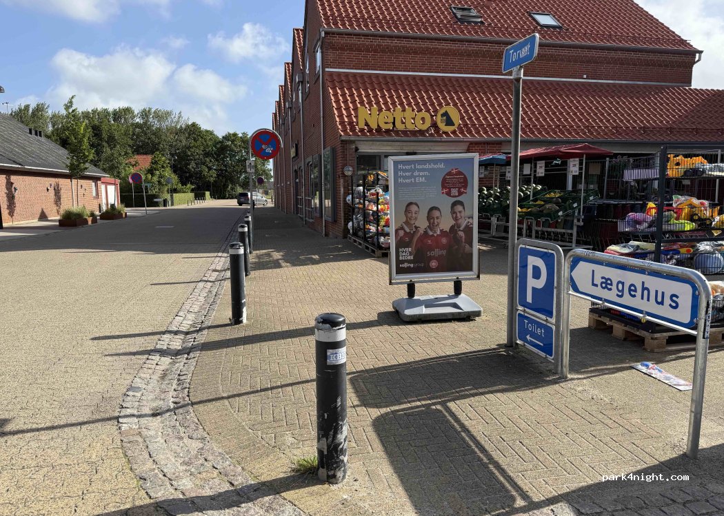 Parking behind Netto. Suitable for vehicles up to 6 meters long. Good for overnight stays and shopping.