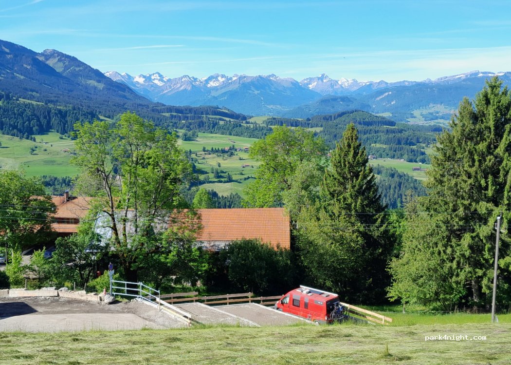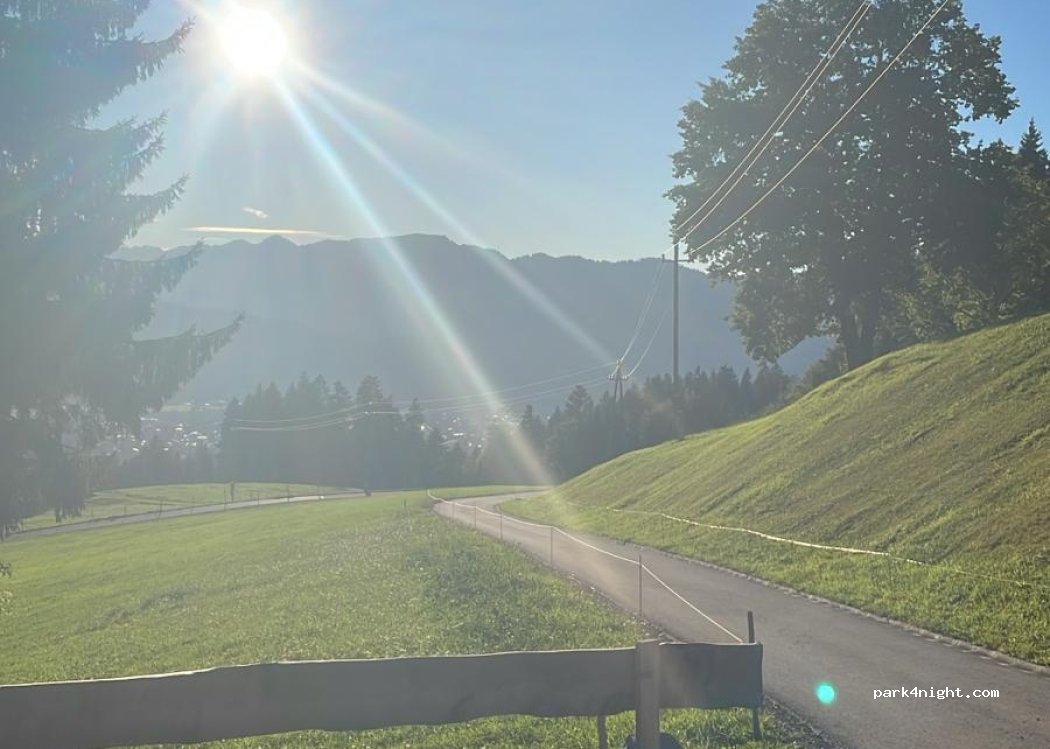 Our newly built RV pitches in the Allgäu near Sonthofen invite you to unparalleled relaxation and recreation! Just the thing for self-sufficient campers! Enjoy your well-deserved vacation on our farm with horses, calves, chickens, and cats. Would you like to see the sun rise over the Ostrachtal Valley, enjoy panoramic mountain views, and watch the sun set over the Nagelfluh mountain range in the west? With our mountain panorama, you'll enjoy wonderful vacation days from sunrise to sunset! "Beim Gundlar" is the perfect place for you if you love camping, appreciate being close to nature, and enjoy a hassle-free mountain bike tour or hike in the Allgäu mountains! It's as if you can get out of your caravan and into the fun of sports without long commutes and stress! Our RV pitches are located in the highest part of the town of Sonthofen at 1,000 meters and combine the seclusion and tranquility of nature with proximity to excursions in Bad Hindelang, Oberstdorf, and Kempten. Our young family looks forward to welcoming you and invites you to a wonderful holiday in the Allgäu!