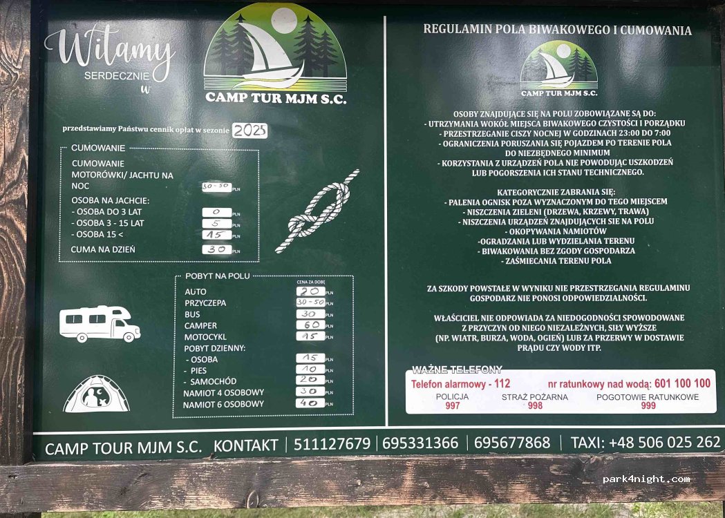 Ca 20. € (60pln/camper + 15pln/person)