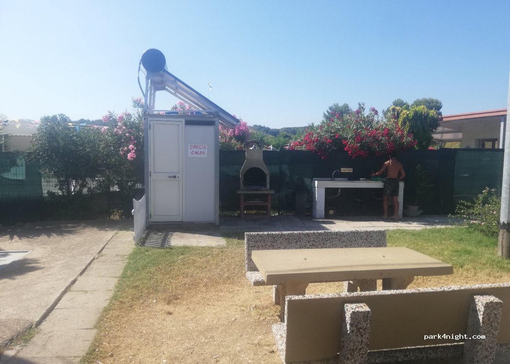 Buona area sosta , pochi posti e al sole . Prezzo 26 € ad agosto compreso luce acqua potabile e scarico acque grigie e nere nell’apposito locale situato all’interno del campeggio però . Servizio comodissimo navetta gratuita per la spiaggia