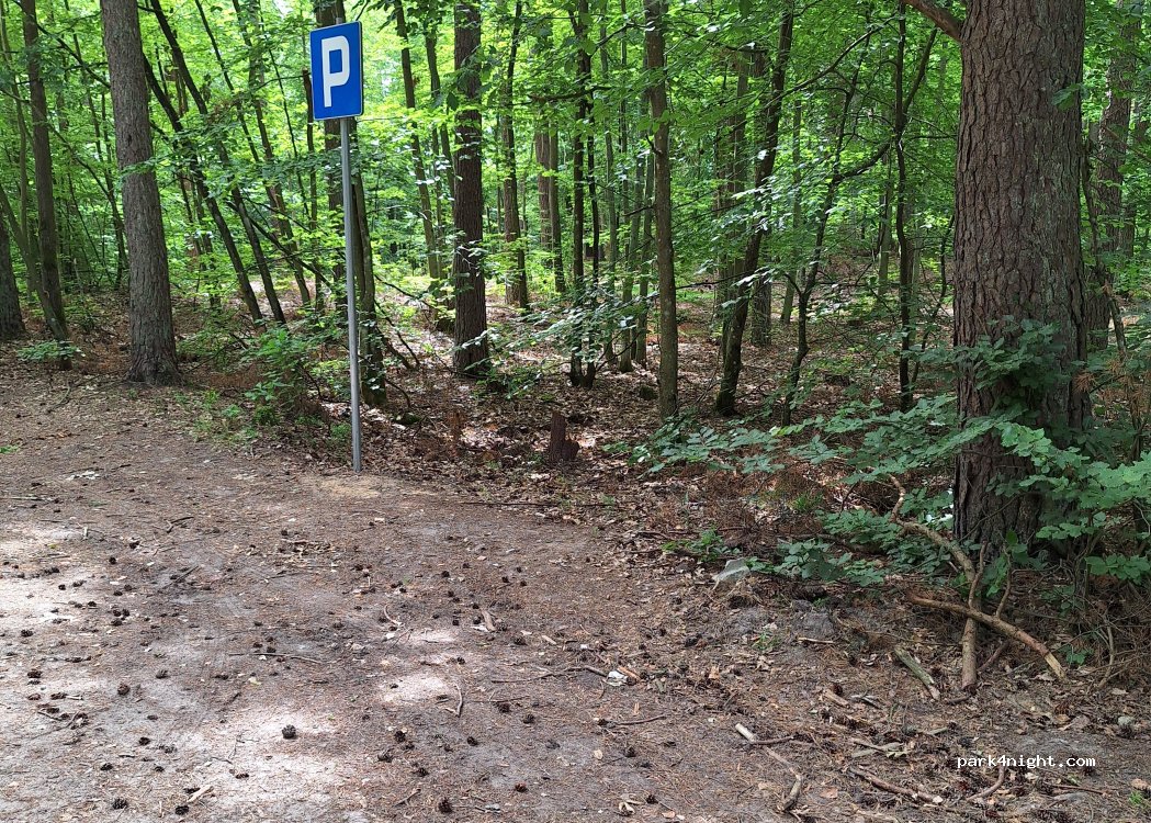 Cet endroit est situé sur un chemin de terre que les habitants fréquentent à pied (souvent avec leurs chiens) jusqu'à un étang voisin (certains s'y garent également pendant leur promenade). Un panneau indique le stationnement et, juste à côté, un espace assez plat permet d'y garer un camping-car. L'endroit est généralement très fréquenté les week-ends et jours fériés ; je recommande donc d'arriver en fin d'après-midi ou en début de soirée.