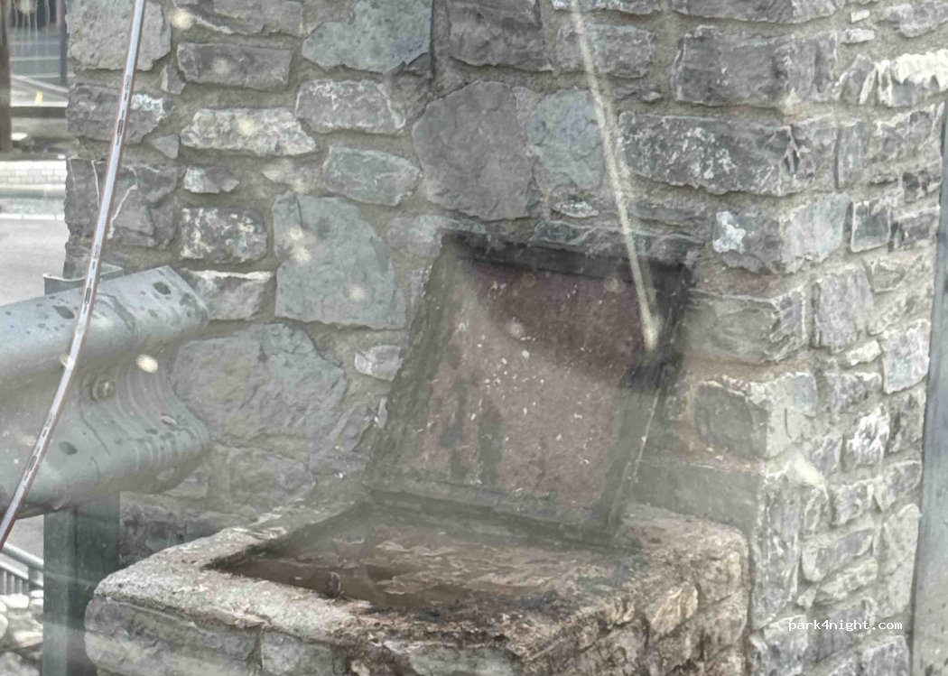 Entleerungs- und Befüllbereich direkt vor der Standseilbahn. Da es sich um eine grüne Zone handelt, ist dort meines Wissens auch Parken erlaubt, obwohl bei unserer Ankunft keine Wohnmobile dort parkten. Der Parkplatz hat drei Ebenen. Es gibt keine Parkbeschränkungen für Wohnmobile wie an anderen Orten, aber es gibt welche.