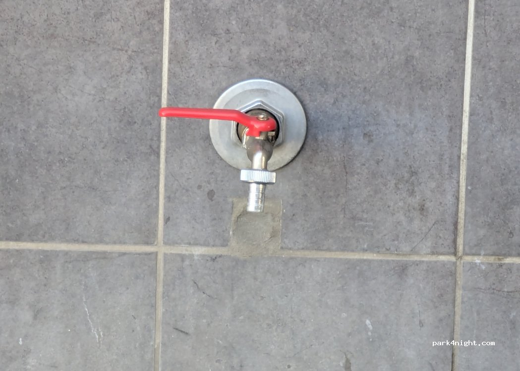 Wasserquelle zum Auffüllen des Wohnmobils. 3/4-Zoll-Hahn kann mit Ihrem Schlauch verwendet werden. Guter Druck. Fragen Sie zuerst den Wärter. Trinkwasser.