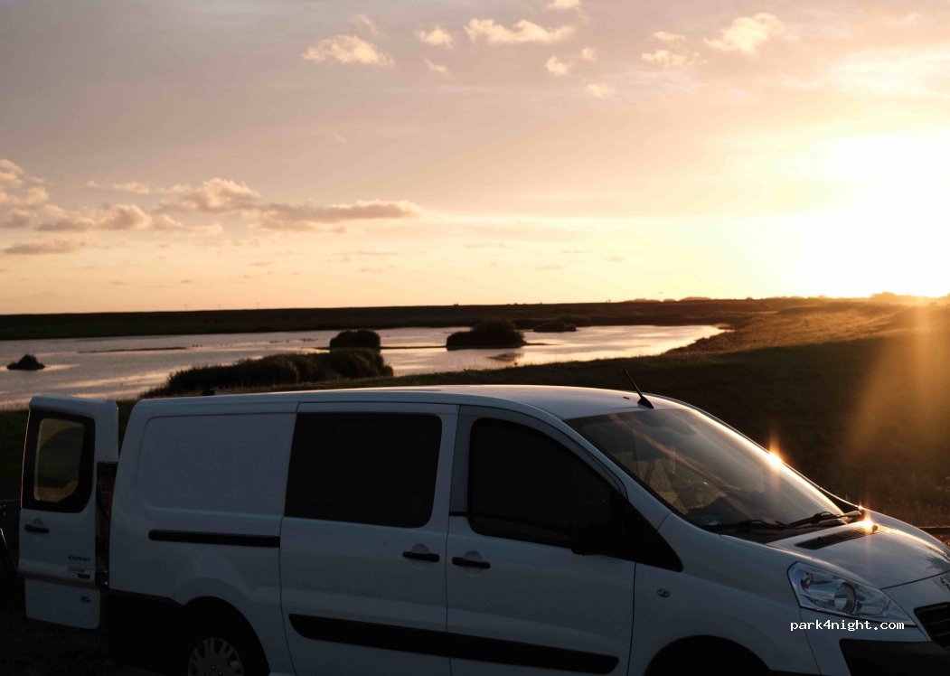 Ein schöner Parkplatz für die Nacht. Tagsüber ist hier leider sehr viel Verkehr, nachts hatten wir aber unsere Ruhe (ca. ab 23:00 Uhr). Wer ein Auge für seltene Vögel hat ist hier ebenfalls richtig. Direkt hinterm Deich (vom Parkplatz einsehbar) tümmeln sich viele geschützte Arten herum. Leider war auch hier wieder ein bisschen Müll vorzufinden :( Bitte haltet den Platz sauber!!